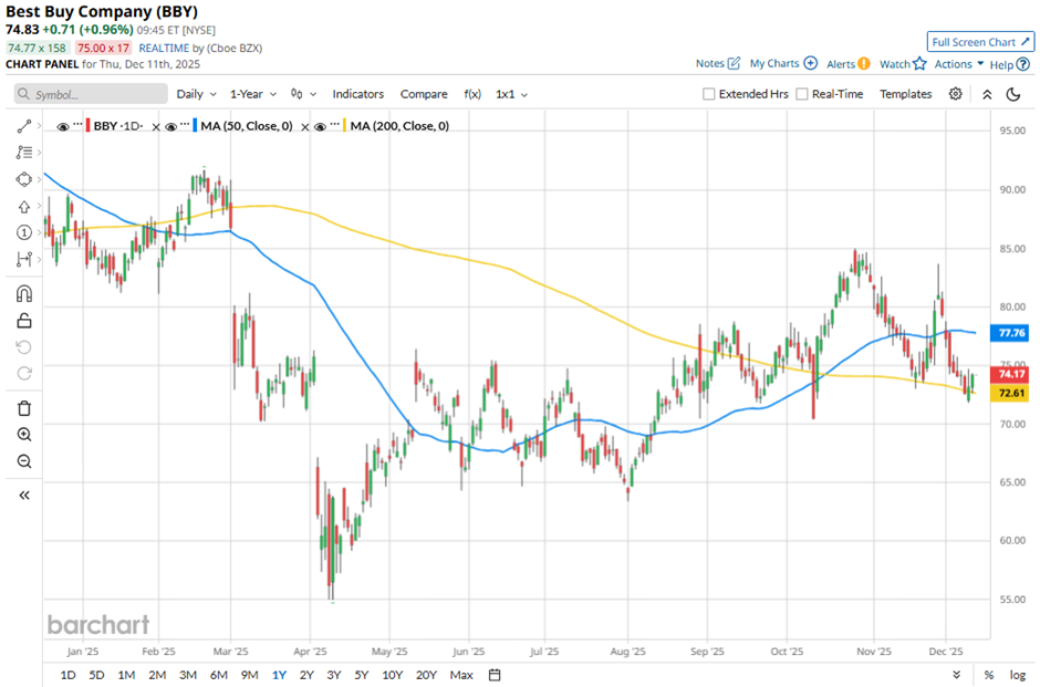 Longer term, BBY stock is down 13.6% on a YTD basis, underperforming XRT's 10.4% gain. Moreover, shares of the consumer electronics retailer have dipped 14.9% over the past 52 weeks, compared to XRT’s 4.2% rise over the same time frame.
