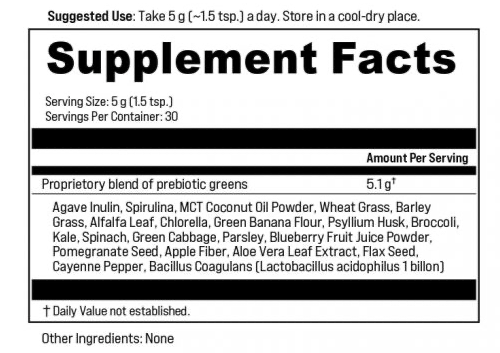 Relive Greens from The ROOT Brands includes MCT coconut oil powder for metabolic and energy support, cayenne pepper for circulatory benefits, and pomegranate for antioxidant support. Bloom Nutrition features a dedicated "Antioxidant Beauty Blend" with cranberry, acai, goji berry, elderberry, grape seed extract, and matcha green tea targeting skin health-a positioning not present in Relive Greens or AG1. AG1 contains mega-doses of certain vitamins-1,100% daily value for biotin and 556% for vitamin C-while providing 2 grams of dietary fiber per serving.